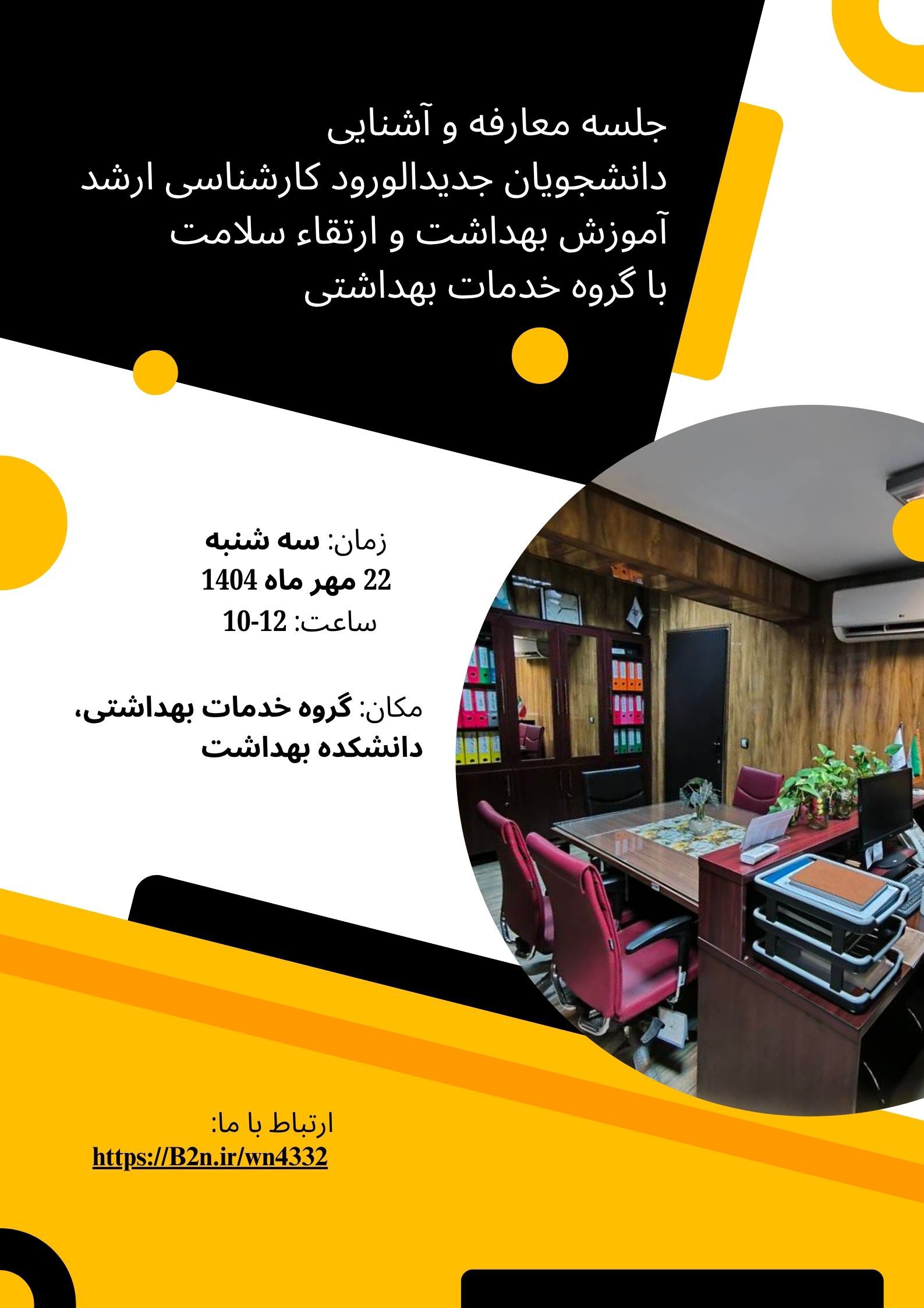 جلسه معارفه و آشنایی دانشجویان جدیدالورود کارشناسی ارشد گروه خدمات بهداشتی برگزار خواهد شد.